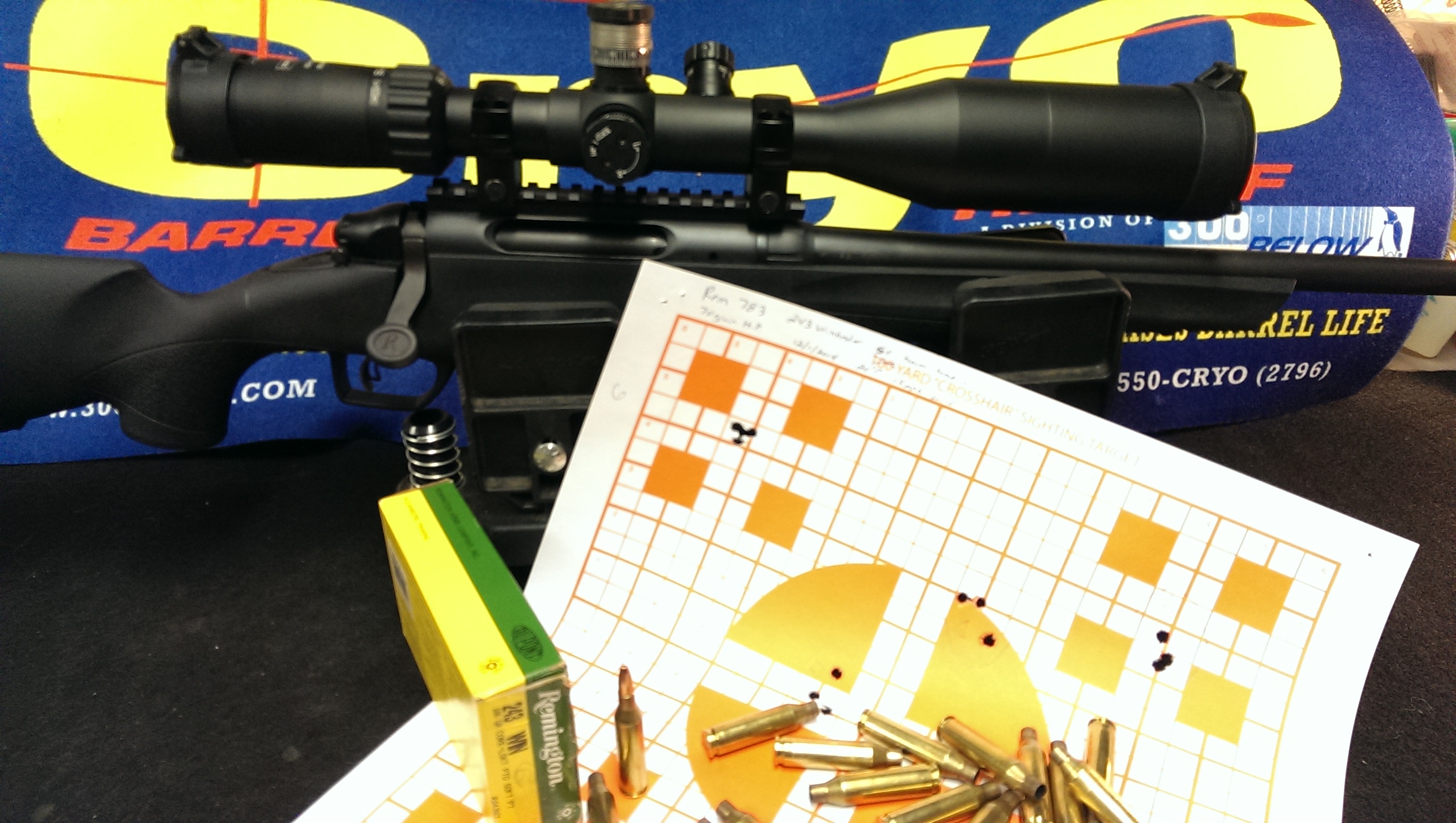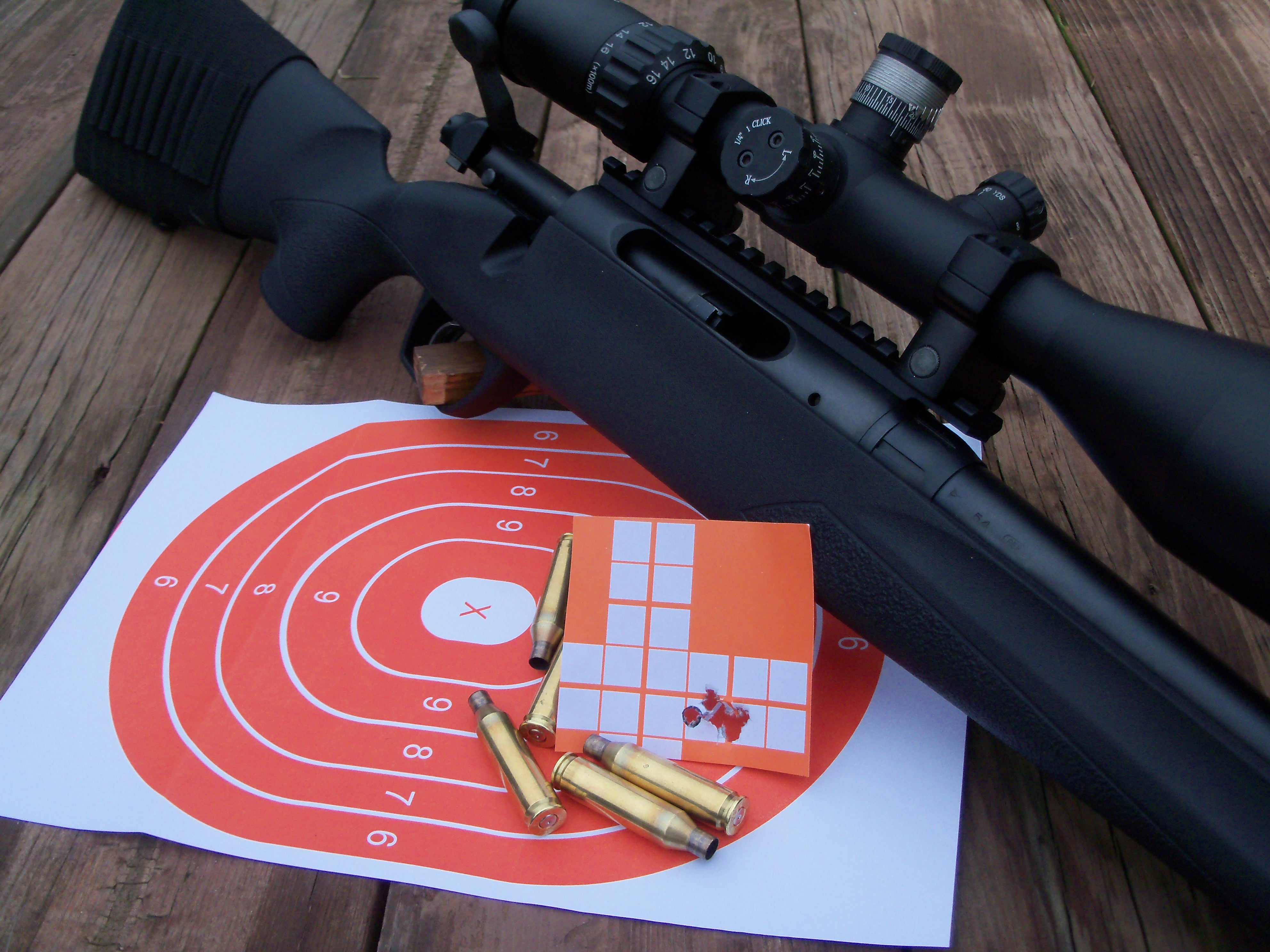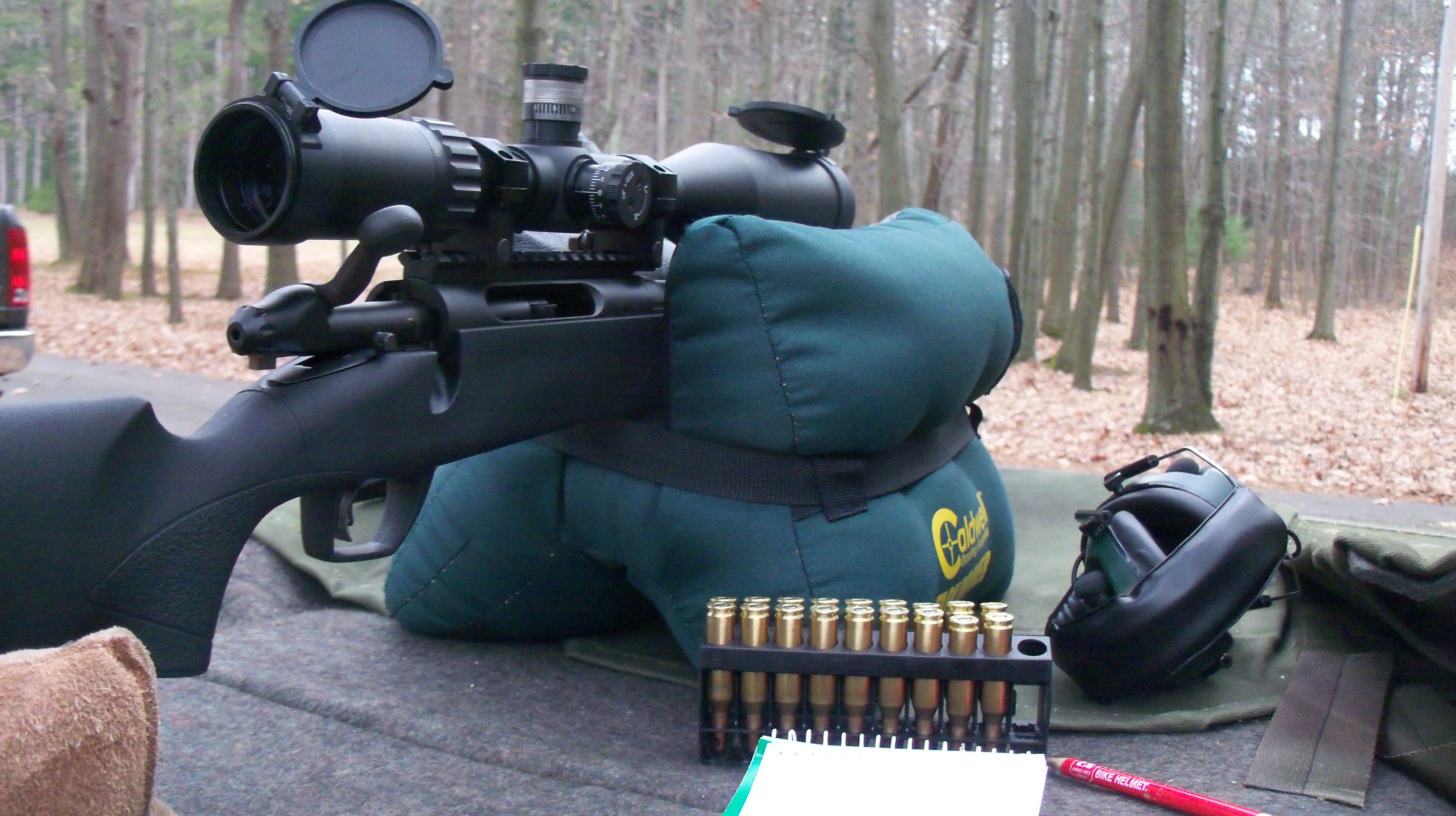 The importance of this article is to show a $250.00 rifle can shoot sub moa right out of the box with quality optics and good loads. Nothing fancy no jewled bolt, high gloss wood or bluing just good solid accuracy. Five shot groups at 100yards with the cryno set at 10′ from the muzzle, 40 degrees F, cloudy dark day.