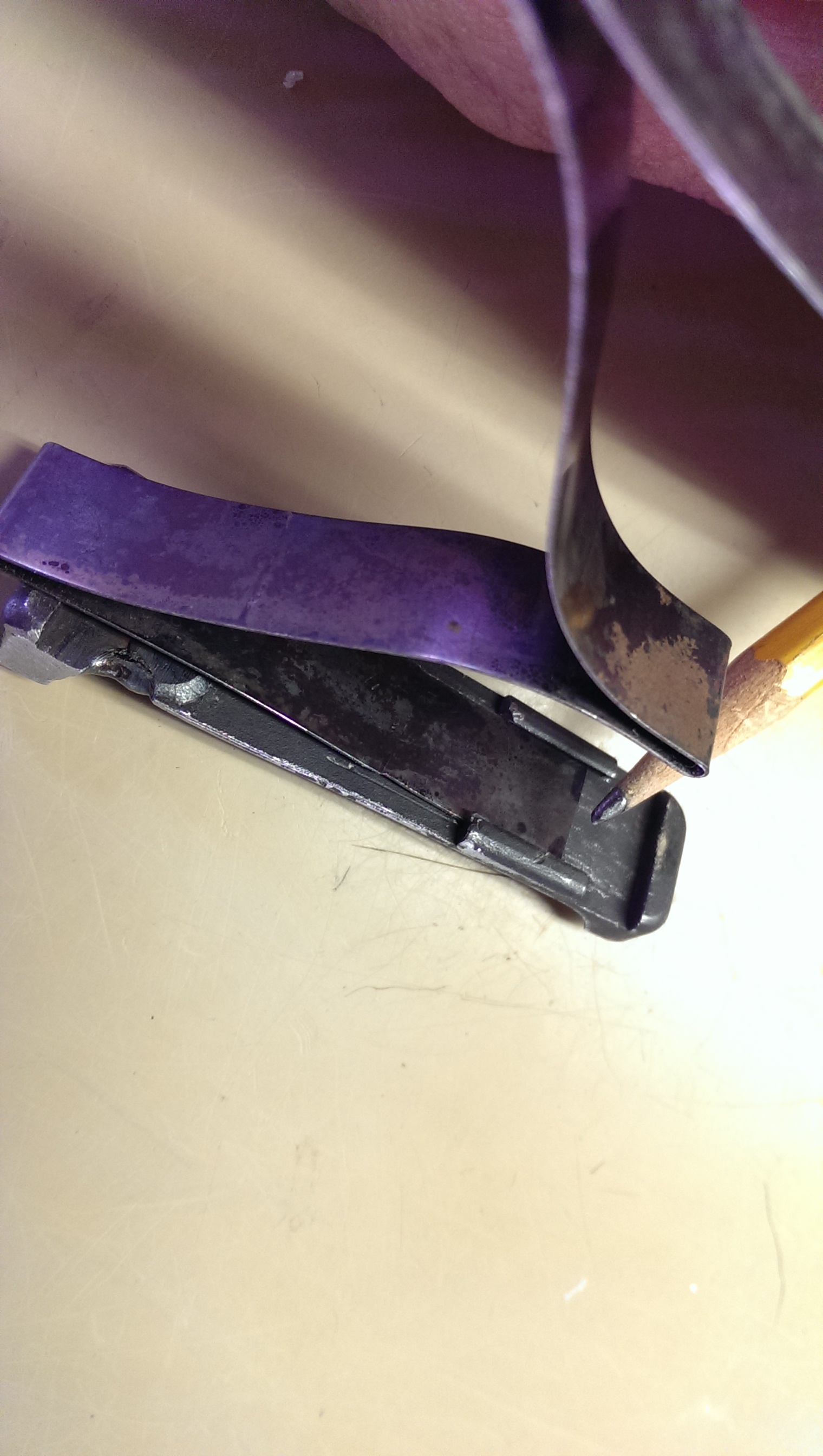 The block will need to be cut to correct length to allow a snug fit from the receiver inner feed rail stop to the removable bottom metal, work slow and test fit often for a perfect fit. Next up on the block fitting will be opening up space for the bolt to pass over it while still keeping the cartridge held forward while lying in the follower. A dermal tool with a drum sander will make quick work of this task, again trial fit and remove small amounts of material at a time. Once fit the bolt should not bind anywhere as it passes over the magazine block while also having the cartridge head stop against it. With the block and follower made a correct size magazine spring will need to be selected, I have quite a pile of left over magazine springs to dig thru hoping to find a favorable donor (another reason to keep old gun parts). A magazine spring is selected by measuring the space from the front side of the new block to the front inner side of the magazine well. With the spring compressed the center leaf length needs to fit in the magazine space with plenty of free movement. The leaf that fits into the follower spring clip will need to be shortened and have the narrow side section filed back to allow full engagement into the follower groove while allowing the rear portion to be held against the follower stop.