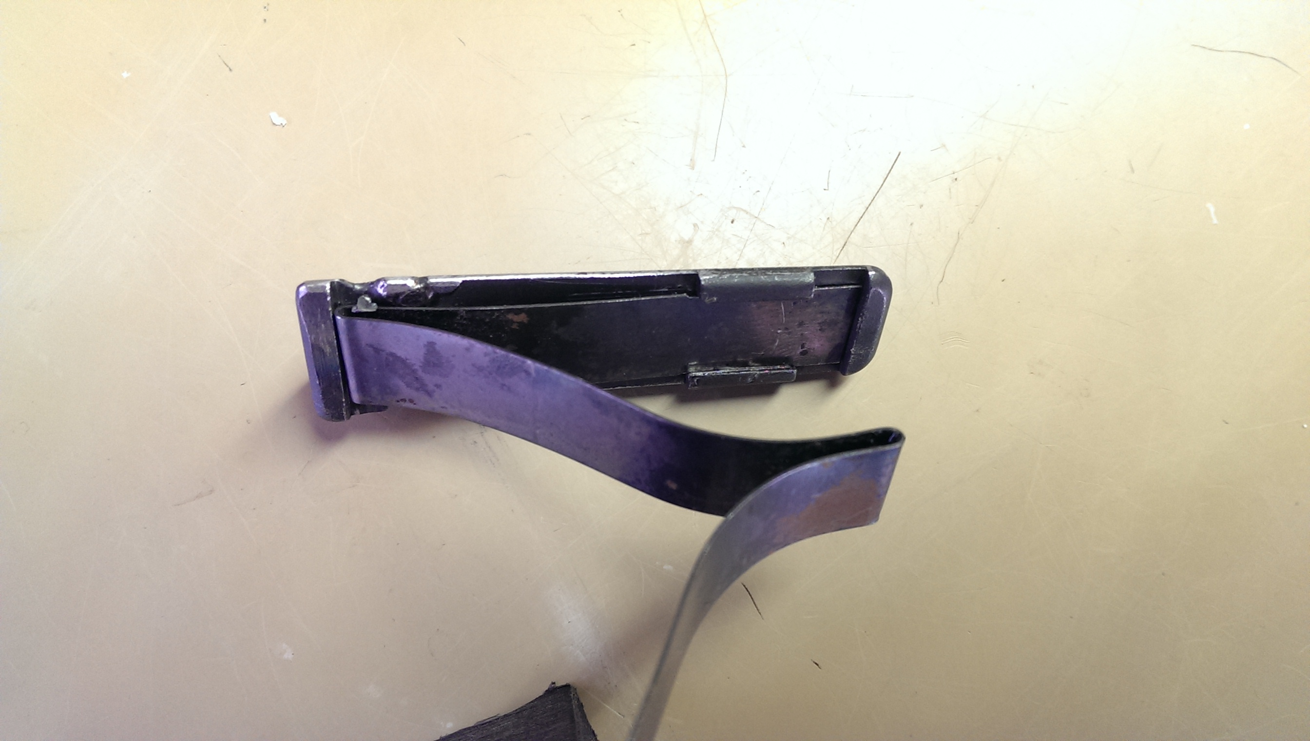 Test fit the spring by pushing the assembled spring and follower down into the magazine. When binding is noticed the cure is to shorten the leaf spring that fits into the floorplate. When this spring section is shortened it allows the magazine spring to pivot the follower forward allowing free travel thru the magazine. Now you should have smooth feeding cartridges when fully loaded into the magazine along with a good feeling push feed when stripping a fresh round.