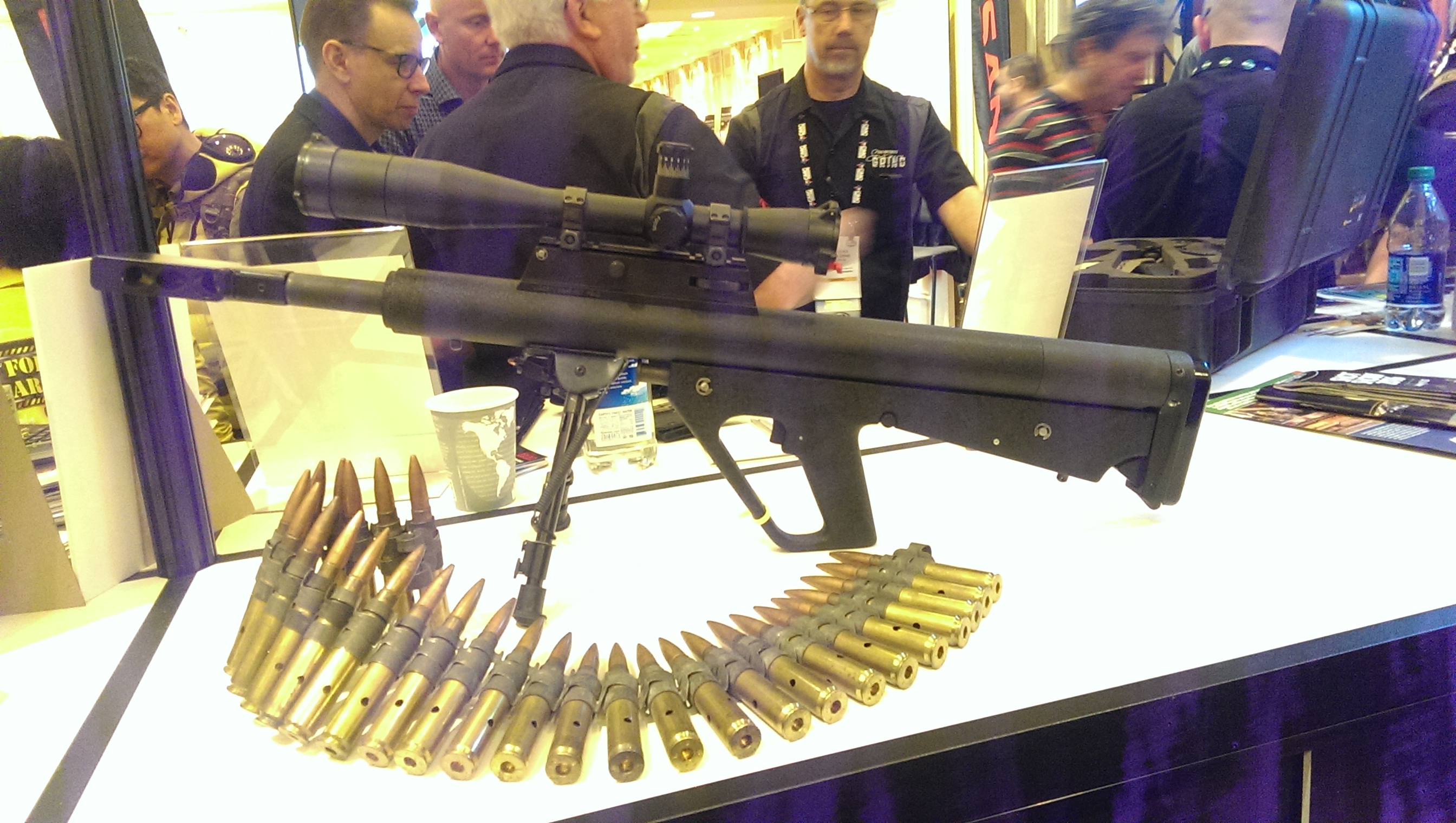 With massive turbine generators and spotless clean facilities this site not only provides power but also water to vast desert areas.  After the tour we found a good local place to eat called Ellis Island Casino and enjoyed ice-cold craft beer and great tasting burgers. The next morning started off early with a shuttle ride to the Sands Expo Center  then taking in as much of the 2000+ exhibitors as I could, with 64000 attendees you can about imagine what a sea of people flowed thru isles of vendor booths and yes you can touch, feel, twist knobs and pull the trigger on anything there! A 1911 45ACP dual pistol machined as one ( two barrels one trigger,hammer,slide and darn massive to hold on to) then how about a back pack 50 caliber bull pup rifle! 30″ long, kicks like a 12 gauge and effective to one mile, all this weighing in at 30Lbs